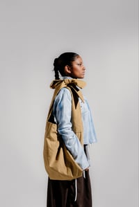 oversized bow tote in sand. made in canvas. fully lined with zippered pocket. slouchy fit.